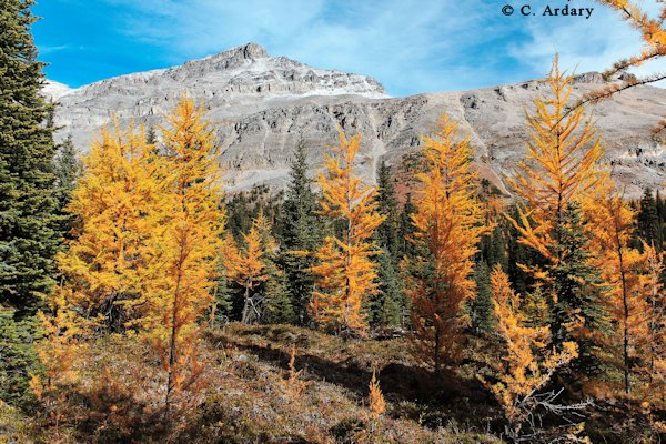 color larch on the trail to Rockbound Lake. The trail