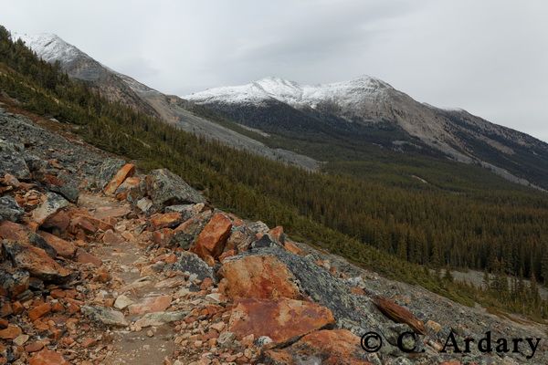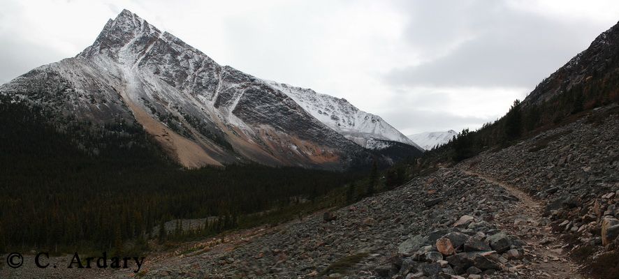 is the view back on the Portal Creek trail to the Tonquin